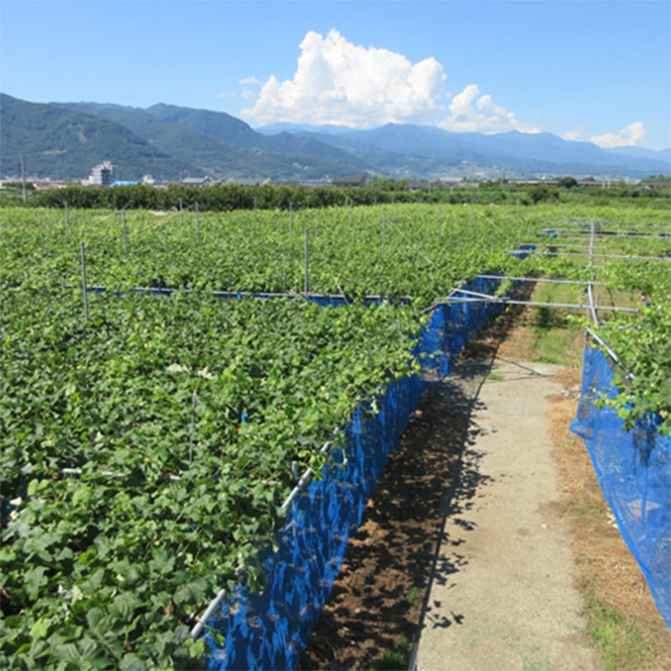 笛吹市は、ぶどう・桃の栽培面積・収穫量・出荷量、いずれも全国一を誇っております。 肥沃で水はけのよい土壌、盆地特有の昼夜の寒暖差、そして日本有数の日照時間の長さにより、果実は陽の光をたっぷり浴び、大きく、甘く成長するという果樹栽培に優れた地域になっております。